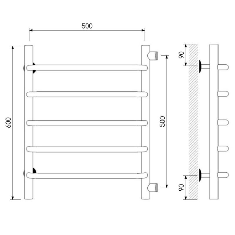 Полотенцесушитель водяной Laris Виктория 73208011 П5 50x60см хром