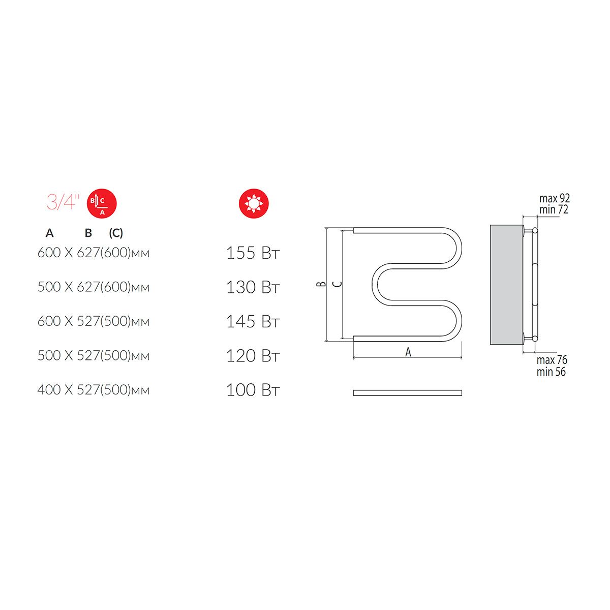 Полотенцесушитель водяной Terminus М-образный 25 (3/4") 600x500