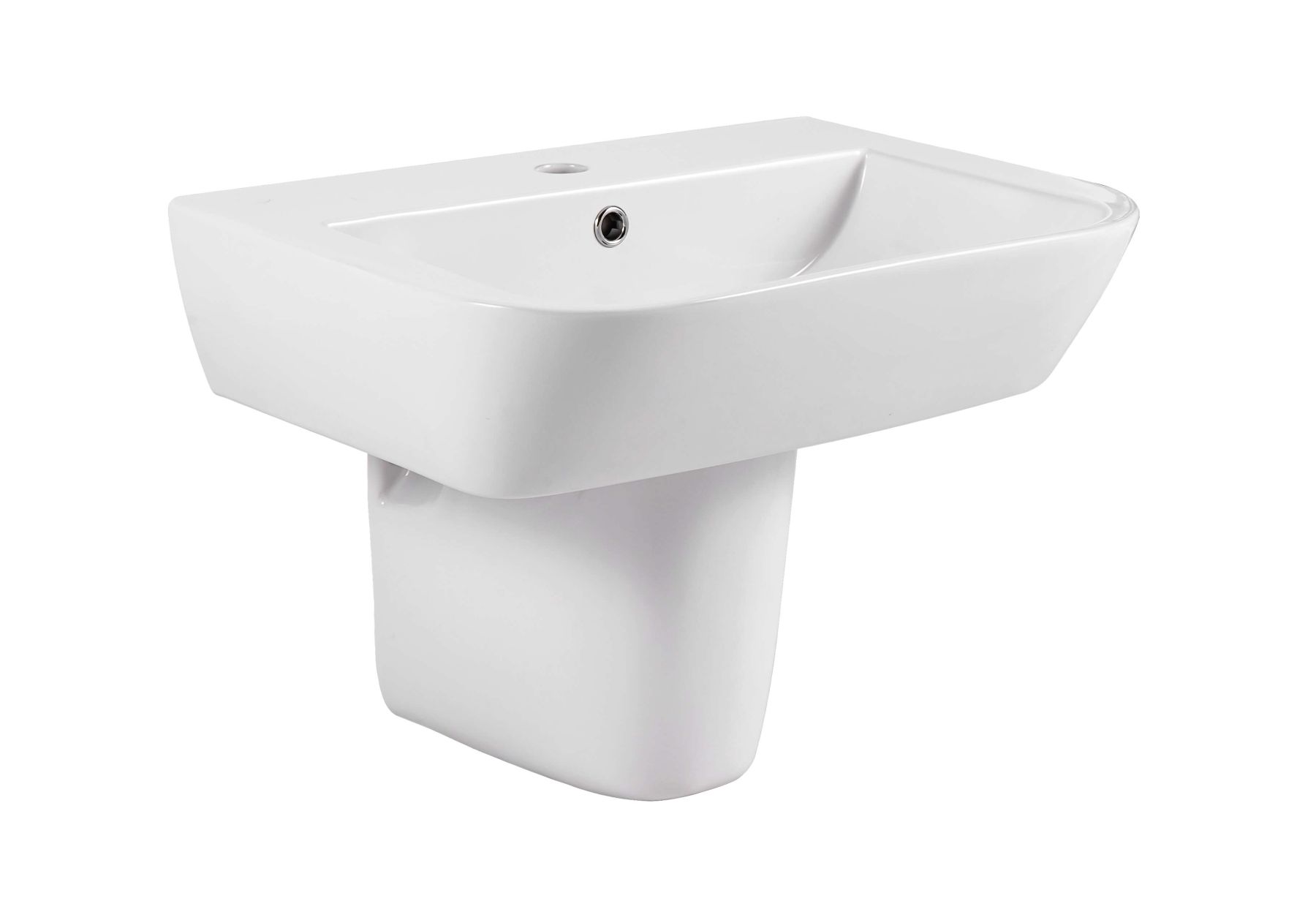 Подвесная раковина может крепиться на стену или устанавливаться на пьедестал или полупьедестал по вашему желанию. Раковина для ванной на пьедестале — это элегантное и функциональное решение, позволяющее разгрузить пространство, идеально для оформления интерьера ванных комнат в классическом стиле. Подходит для использования как в частных квартирах и домах, так и для санузлов общего пользования. Элегантная прямоугольная чаша раковины выполнена из 100% санитарного фарфора, покрытого прочной глазурью, легко очищается обычными бытовыми средствами и сохраняет белизну на протяжении всего срока службы. Пьедестал, выполненный в том же стиле, что и чаша, придает раковине завершенный вид. Он не только поддерживает конструкцию, но и скрывает сантехнические коммуникации. Установка такой раковины позволяет сэкономить пространство в ванной комнате, придавая ей стильный и аккуратный вид. Раковина на пьедестале — это отличный выбор для тех, кто ценит сочетание эстетики и практичности в дизайне интерьера.