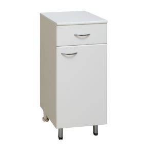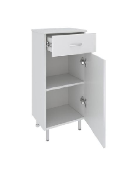 Тумба в ванную (полупенал) с одним выдвижным ящиком и распашной дверкой. В нижнем отделении - одна встроенная полка. Ящик - на шариковых направляющих, петли со встроенным доводчиком, ручки - 2шт, ножки хром - 2 шт, ножки пластик -2шт. Выпускается только в правом исполнении.