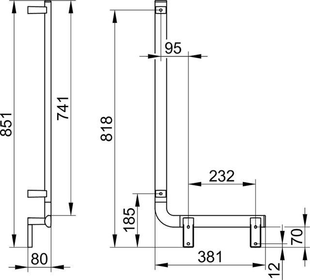 Поручень Keuco AXESS 35006170801 хромKEUCO AXESS Угловой поручень 90°, правый, 381/851 мм, алюминий анод./хром