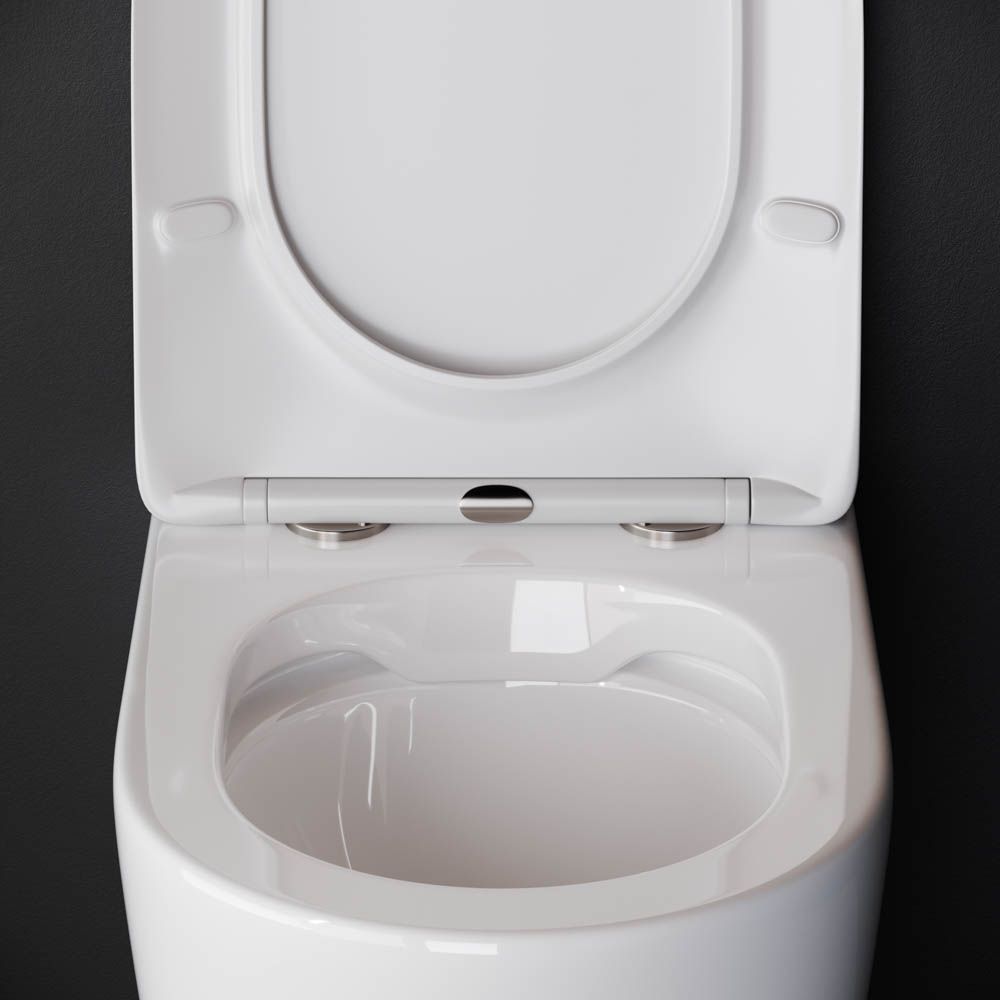 Напольный пристенный унитаз-соло HighLight Rimless, глубокий смыв, горизонтальный (универсальный) выпуск, с крепежом, ультра тонким сидением с функцией плавного закрытия, дюропласт