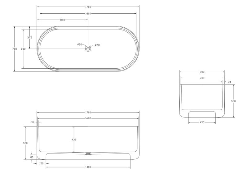 Стандартные размеры, см:170x75
