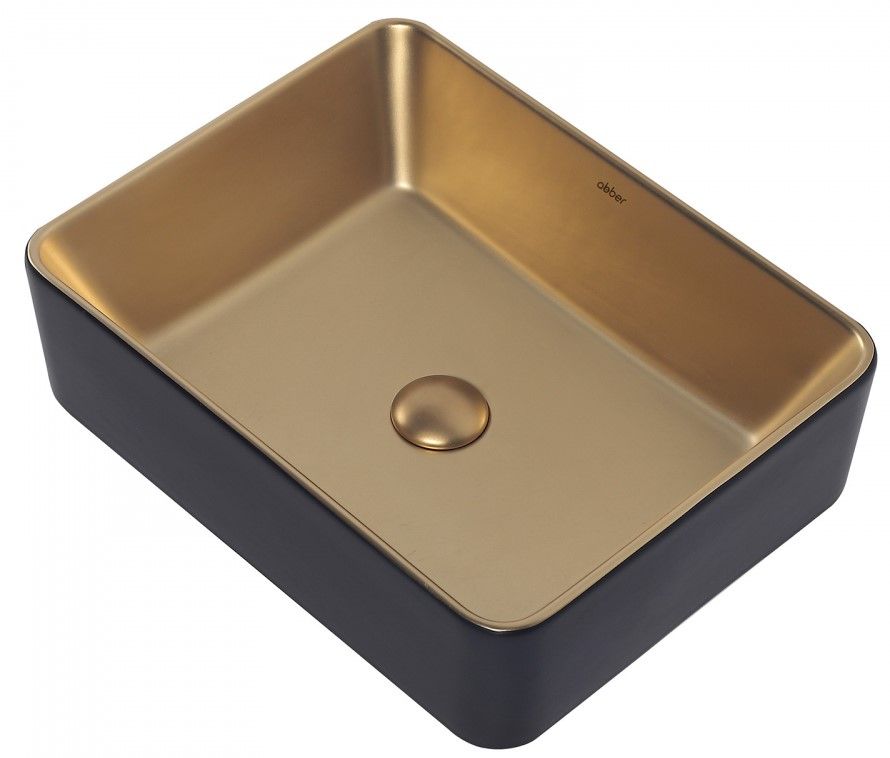 Раковина ABBER Rechteck AC2212BG 49см чёрный/золото матовое