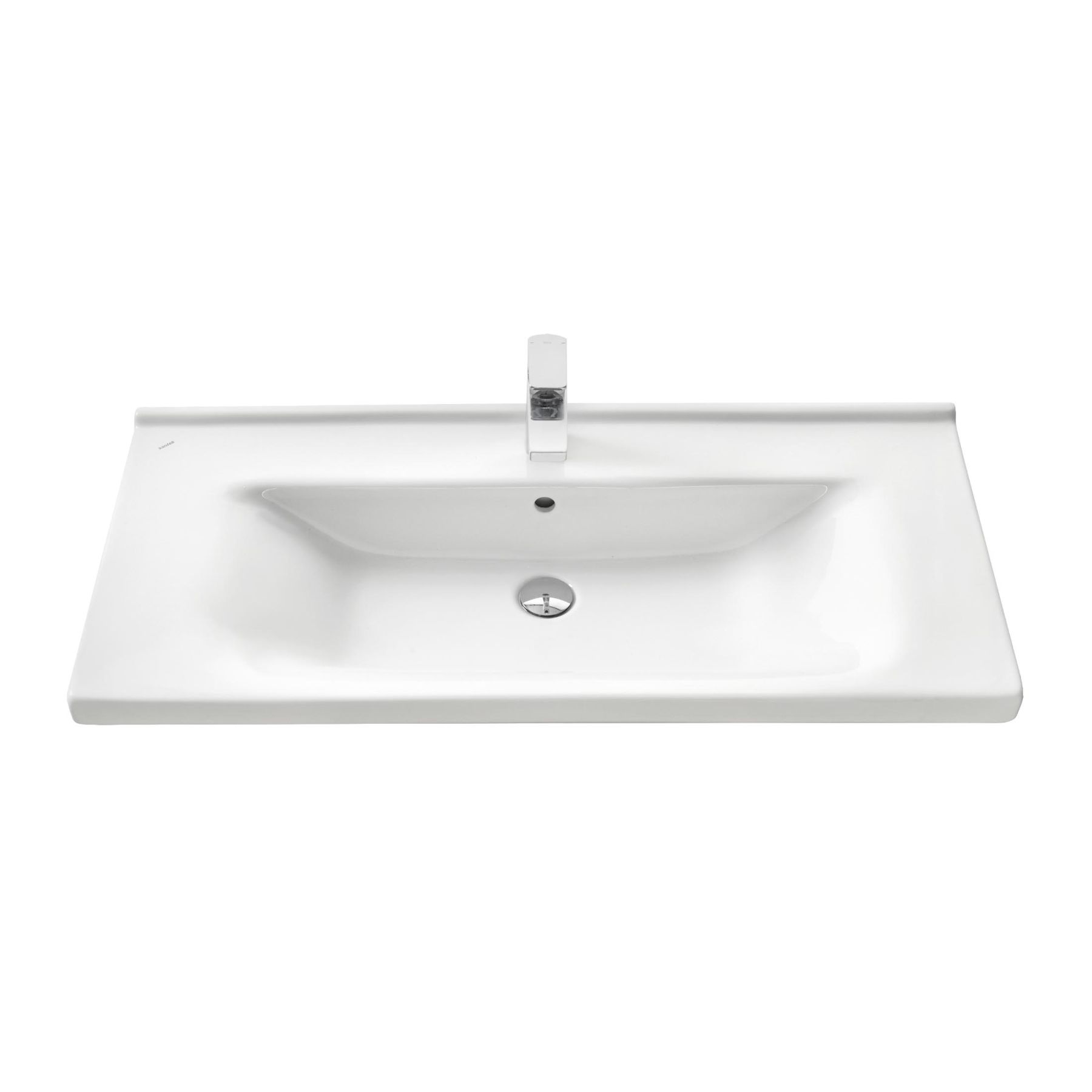 Теперь раковина Миранда доступна в размере 100 см. Широкие бортики изделия позволяют разместить различные ванные принадлежности. Глубокая удобная чаша препятствует разбрызгиванию воды. Раковина хорошо сочетается как с напольной, так и подвесной тумбой.;