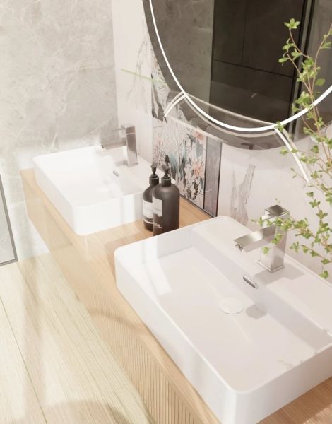 AQM5004 Раковина настольная с отверстием под смеситель. 590х430х120антигрязевое покрытие, антибактериальное покрытие, водоотталкивающее покрытиебез крепежного набора