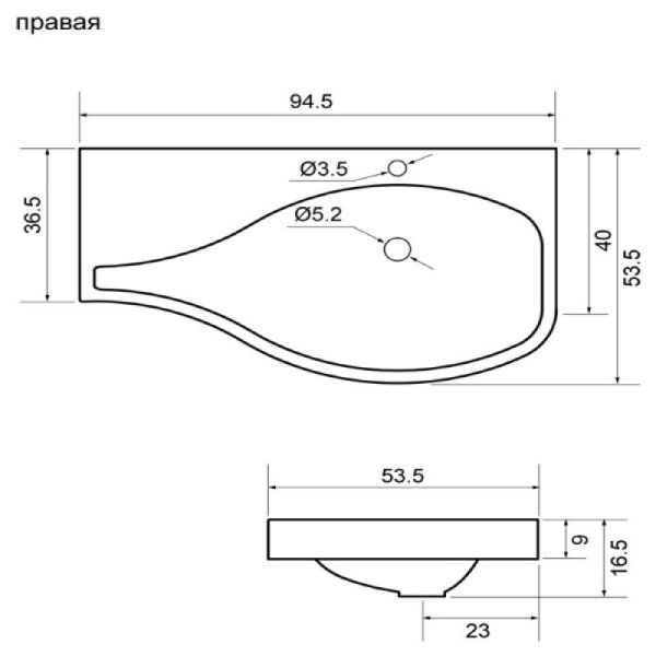 Раковина Aquanet Сопрано 169396 правая 95 см белый