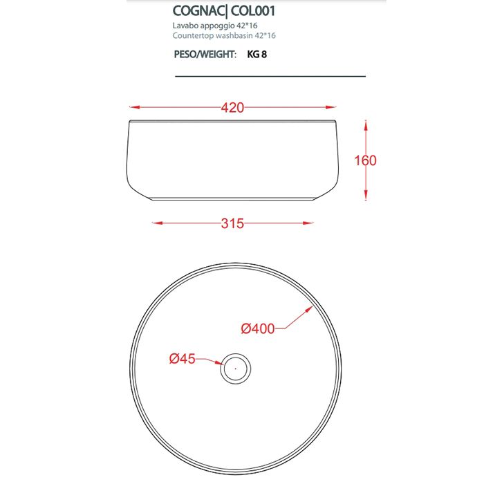 Раковина ArtCeram Cognac COL001 20 00 nero roma 42 см купить