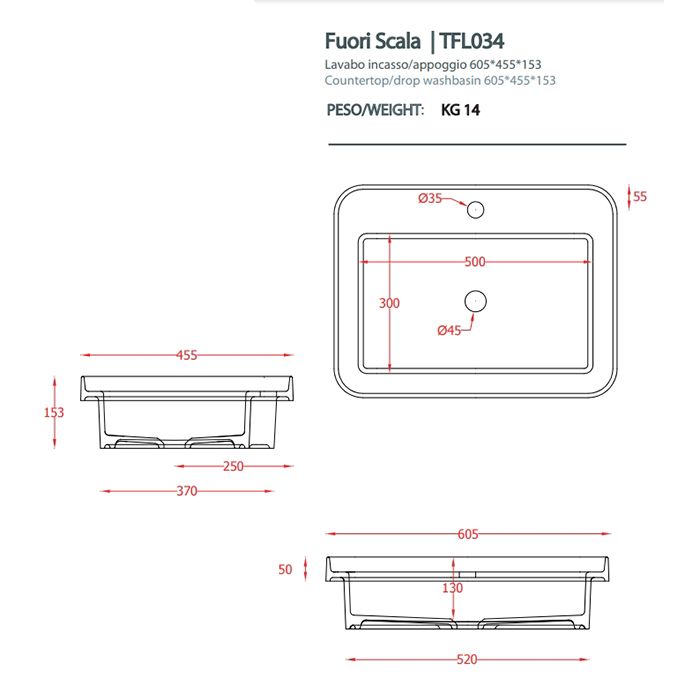 ArtCeram Fuori Scala TFL034 41 00 Раковина встраиваемая сверху на 60 см, без перелива, с 1 отверстием под смеситель. Размер 60х45х15 см см. Цв. matera матовый.