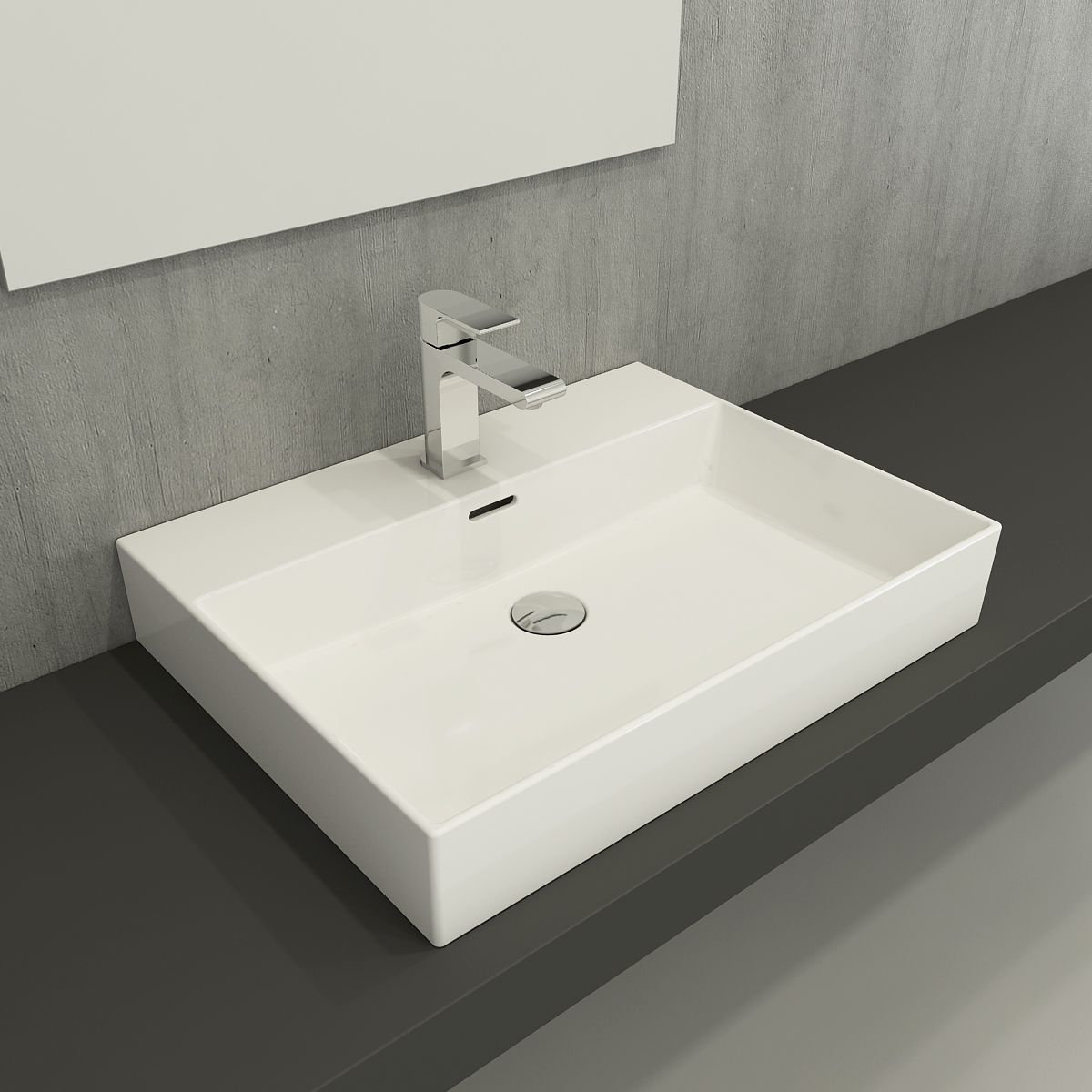 Навесная раковина из санфарфора Berges Ego размером 60х46,5х12 см.Прямоугольной формы, с отверстием под смеситель, глянцевая белая.Вырезной слив-перелив. Крепеж в комплекте.Гарантия 10лет*Донный клапан необходимо приобрести отдельно