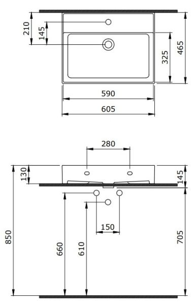 Отверстия под смеситель:1