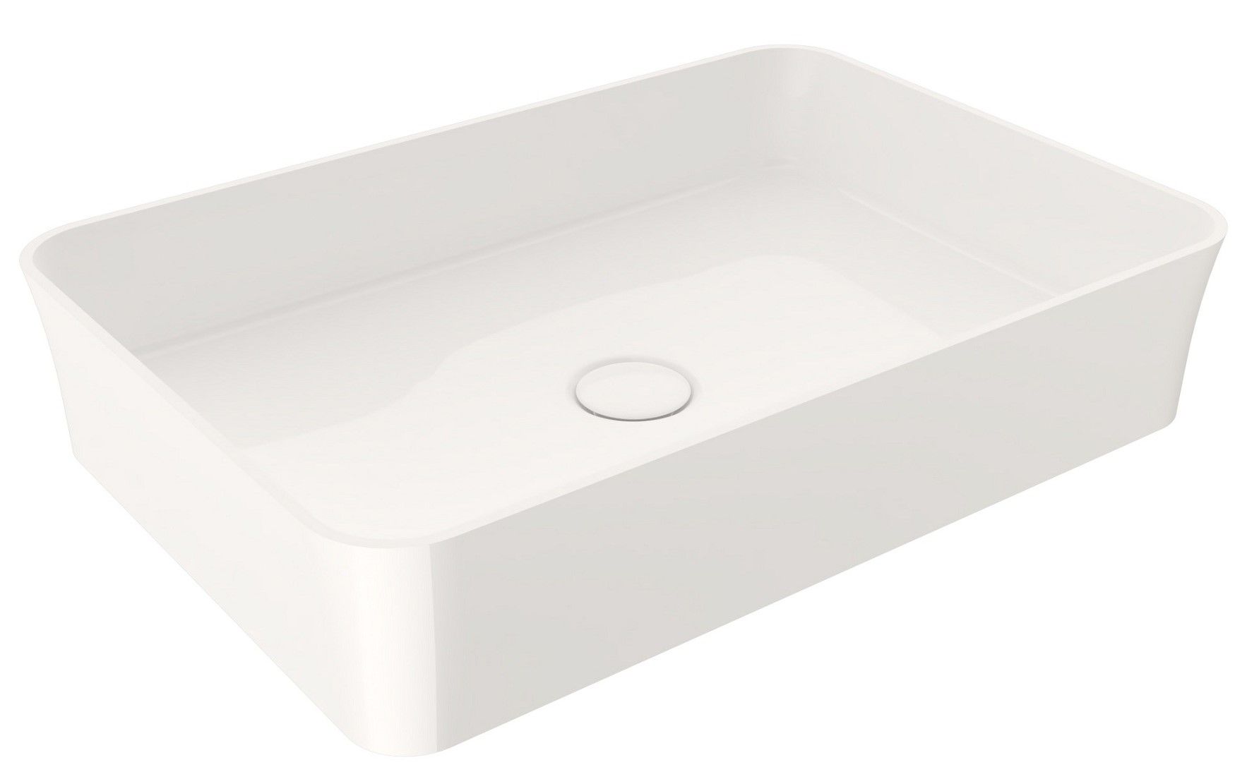 Накладная раковина из санфарфора Berges Ego SL размером 55х38х11,5 см.Прямоугольной формы, без отверстия под смеситель, глянцевая белая.