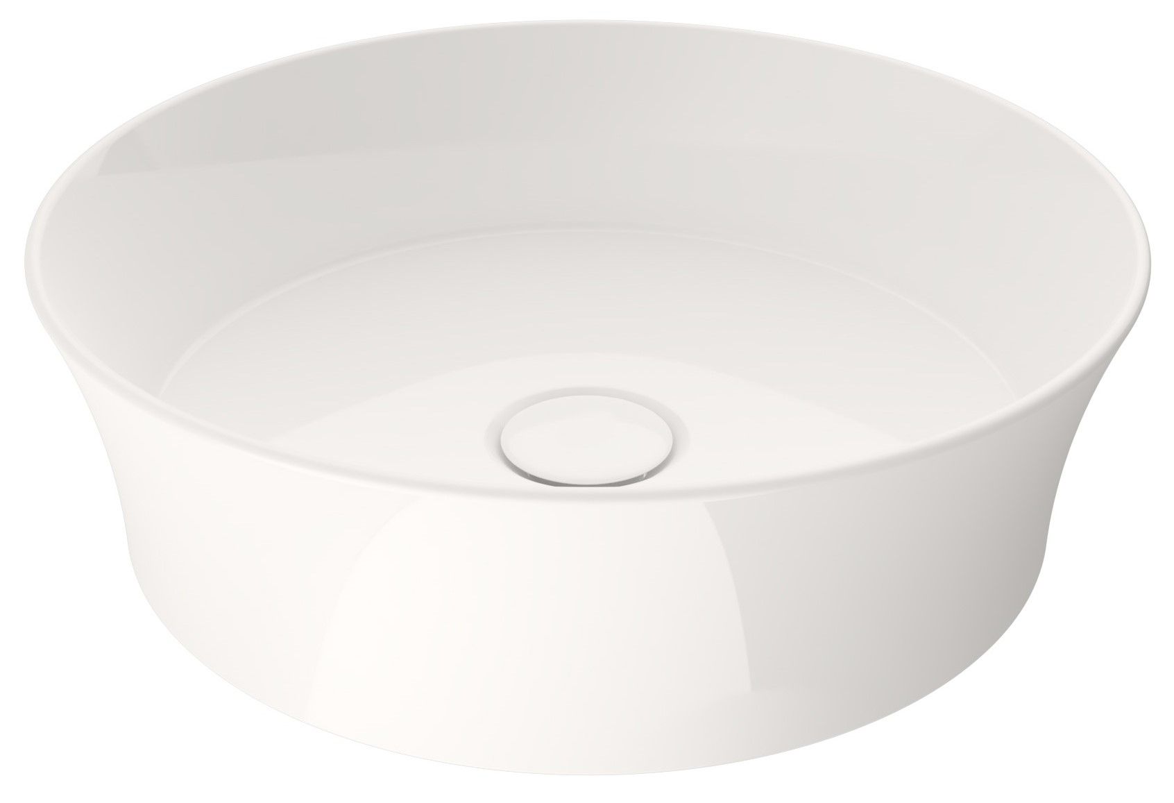 Накладная раковина из санфарфора Berges Ego SL диаметром 38 см.Высота 11,5 см.Круглой формы, без отверстия под смеситель, глянцевая белая.