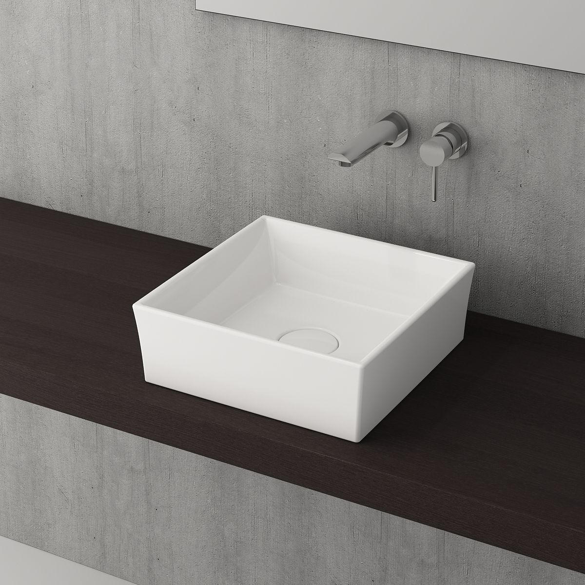 Накладная раковина из санфарфора Berges Mascon размером 38х38х12,5 см.Квадратной формы, без отверстия под смеситель, глянцевая белая.Керамическая крышка слива в комплекте.