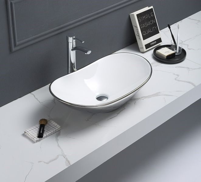 Раковина CeramaLux 7811ASW бело-серая 61.5 смПодходит для ванных комнат различной планировки в современном стиле и отличается стильной и изящной формой.Материал: санфаянс.В комплекте поставки: раковина.