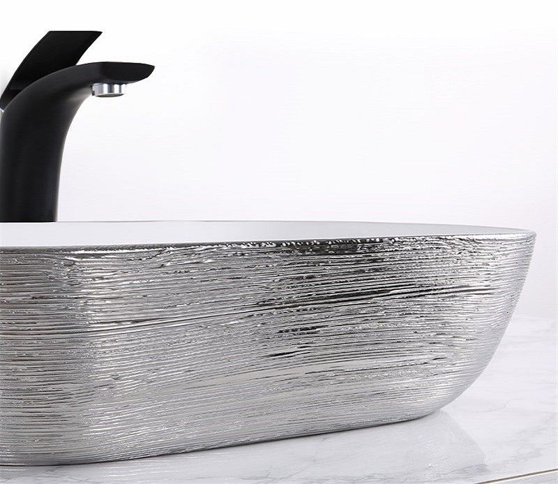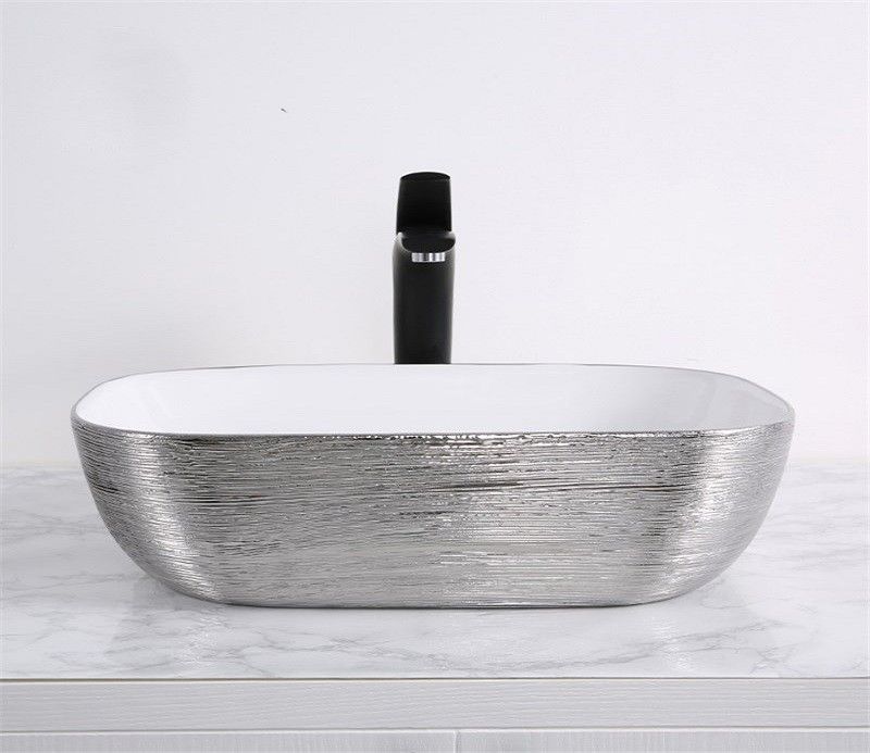 Раковина CeramaLux D1333H131 бело-серая 46 смПодходит для ванных комнат различной планировки в современном стиле и отличается стильной и изящной формой.Материал: санфаянс.В комплекте поставки: раковина.