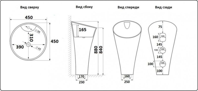 • Отверстия под смеситель:
