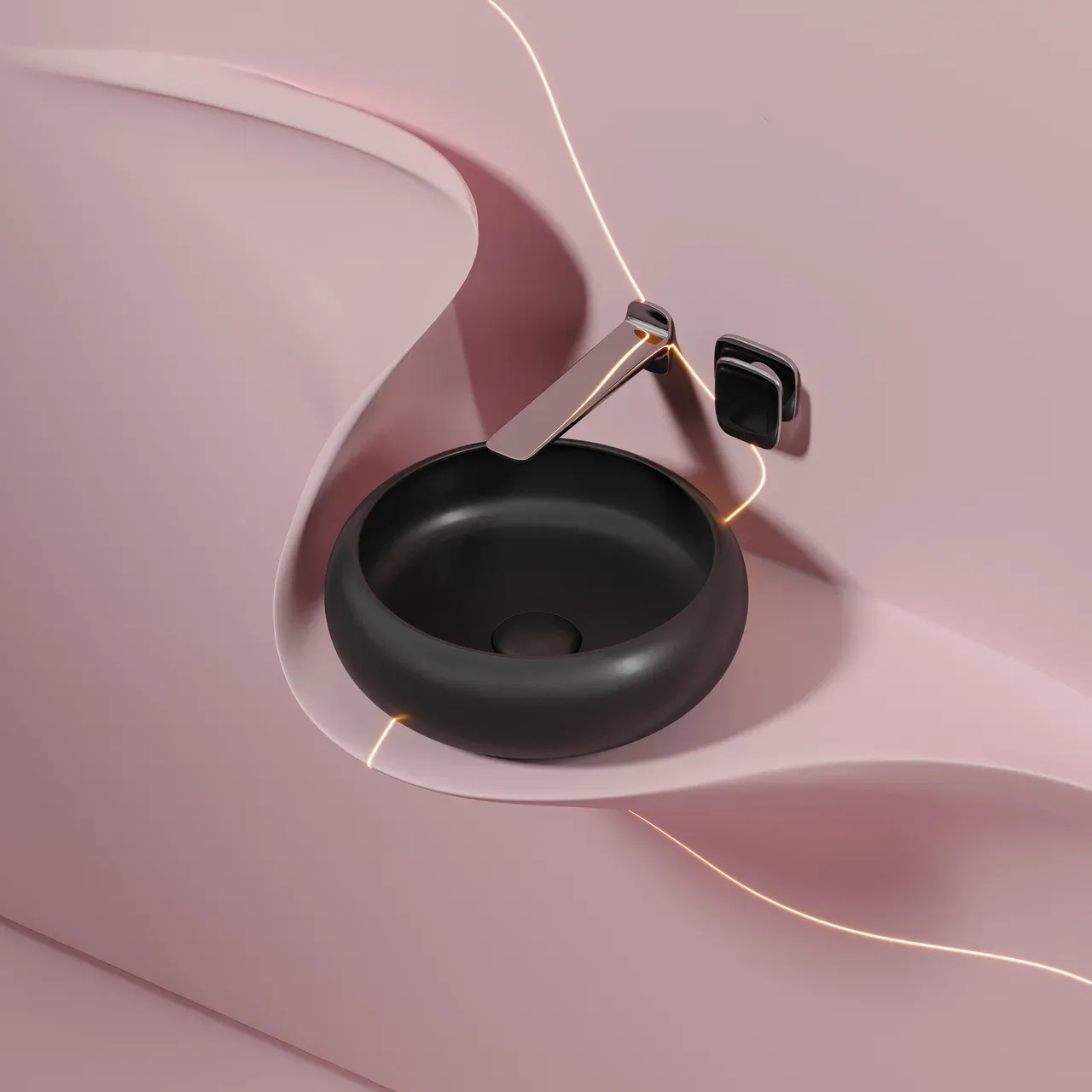 Умывальник чаша накладная круглая (цвет Чёрный Матовый) Element 360*360*120мм