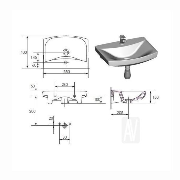 Раковина Cersanit CARINA 55 UM-CAR55/1 55x40