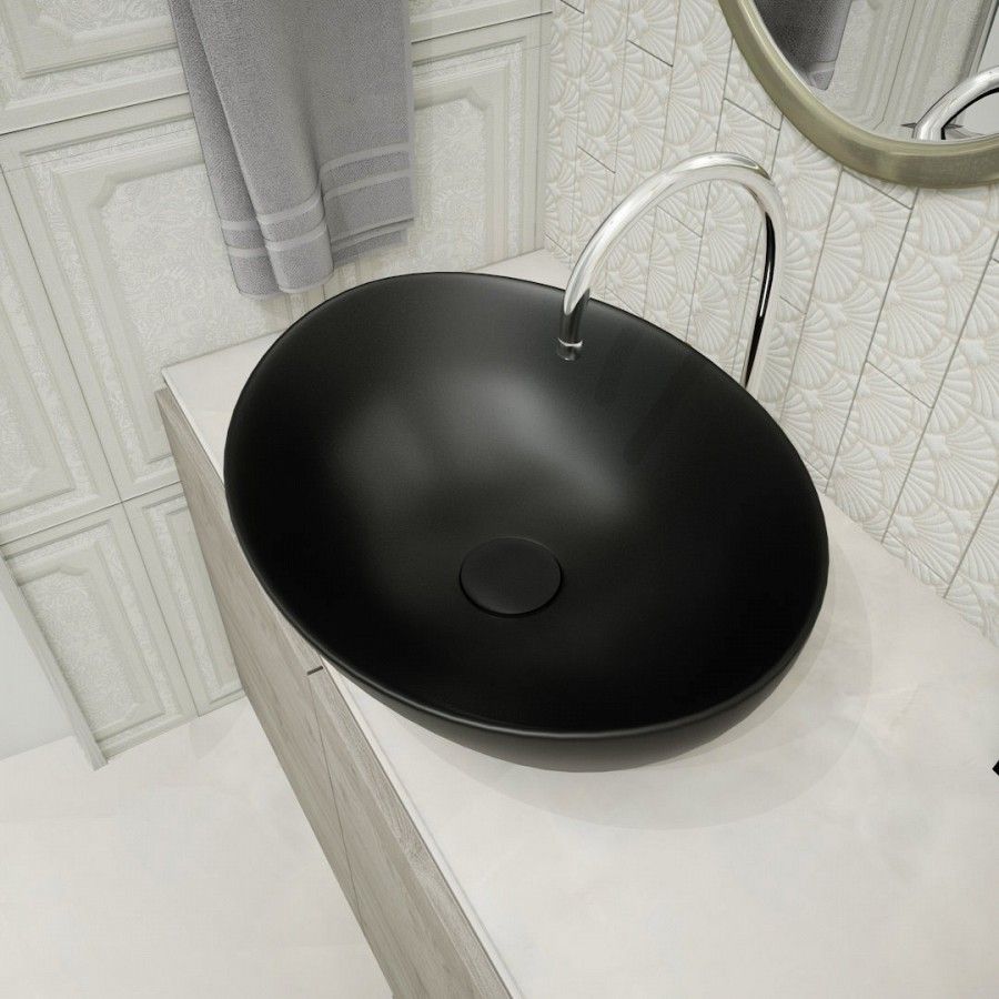 Раковина чаша Maretti EN13NS87-560, черная. Материал: санфарфор. Размер: 41x33,5x14,5. Форма: овальная. Преимущества: - гарантия на изделие – 10 лет; - произведён из санфарфора высшего качества; - антибактериальное водоотталкивающее покрытие чаши; - материал не выцветает со временем и не теряет потребительских свойств; - санфарфор надёжен, устойчив к появлению сколов и царапин.