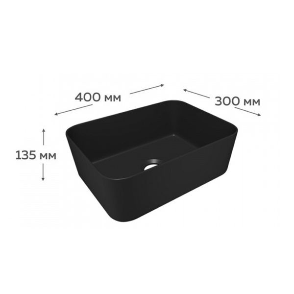 Раковина чаша Maretti UM13NS42-560, черная. Материал: санфарфор. Размер: 30x40x13,5. Форма: прямоугольная. Раковина накладная Maretti UM13NS42-560 черная матовая T50288 — это стильный и функциональный элемент для современной ванной комнаты. Изготовленная из высококачественного санфарфора, она сочетает в себе долговечность и легкость в уходе. Элегантный черный матовый цвет придает модели современный и утонченный вид, который прекрасно впишется в любой интерьер, от минимализма до более насыщенных дизайнерских решений.Размеры раковины (ширина 40 см, глубина 30 см, высота 13.5 см) делают её отличным выбором для компактных ванных комнат, где важно сэкономить пространство, не жертвуя стилем и комфортом. Maretti UM13NS42-560 идеально устанавливается на столешницу, создавая органичную композицию с другими элементами интерьера. Прямоугольная форма с «мягкими» углами и глянцевая поверхность раковины обеспечивают не только практичность, но и визуальную привлекательность.Модель не имеет отверстий под смеситель и перелив, что позволяет вам выбрать подходящий смеситель по вашему вкусу, а также придает раковине более чистый и минималистичный внешний вид. Диаметр слива 4.5 см соответствует стандартам, обеспечивая лёгкость подключения к сливной системе.