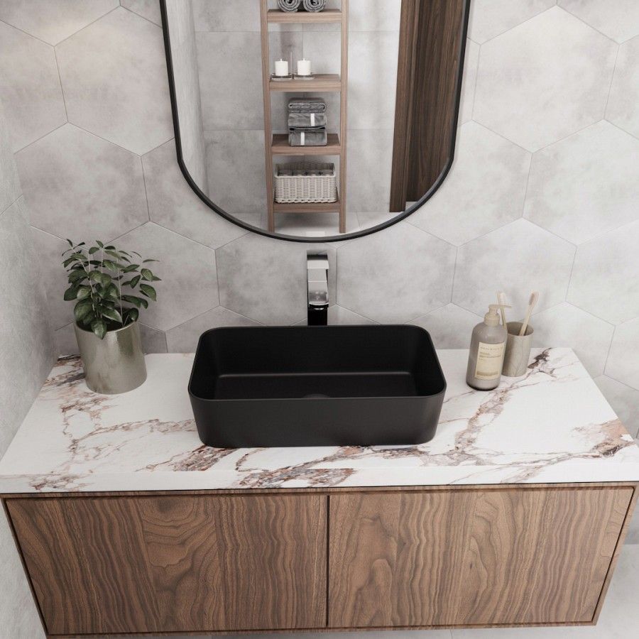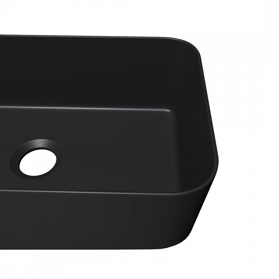Раковина чаша Maretti UM13NS48-560, черная. Материал: санфарфор. Размер: 29,5x48x13,5. Форма: прямоугольная. Раковина накладная Maretti UM13NS48-560 черная матовая — это стильное и элегантное решение для современной ванной комнаты. Изготовленная из высококачественного санфарфора, она сочетает в себе прочность и долговечность, обеспечивая долгий срок службы и лёгкость в уходе. Матовый черный цвет придаёт раковине утончённый и современный вид, который идеально впишется в различные интерьеры — от минималистичных до более эклектичных.Модель Maretti UM13NS48-560 с размерами 48 см в ширину, 29.5 см в глубину и 13.5 см в высоту идеально подходит для установки на столешницу, создавая стильный акцент в ванной комнате. Прямоугольная форма со скругленными углами и глянцевая поверхность делают её не только практичной, но и визуально привлекательной. Отсутствие отверстий под смеситель и перелив придаёт изделию чистоту и минималистичный стиль, позволяя вам выбрать и установить смеситель по вашему вкусу.Раковина предназначена для использования в бытовых условиях и оснащена стандартным диаметром слива 4.5 см, что обеспечивает совместимость с большинством сливных систем. В сочетании с высококачественным санфарфором раковина обладает устойчивостью к загрязнениям, а её матовая поверхность остаётся привлекательной даже после долгосрочной эксплуатации.