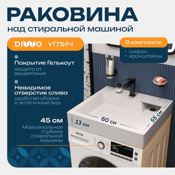 Раковина DIWO Углич RnDUE-60 60 на стиральную машину купить