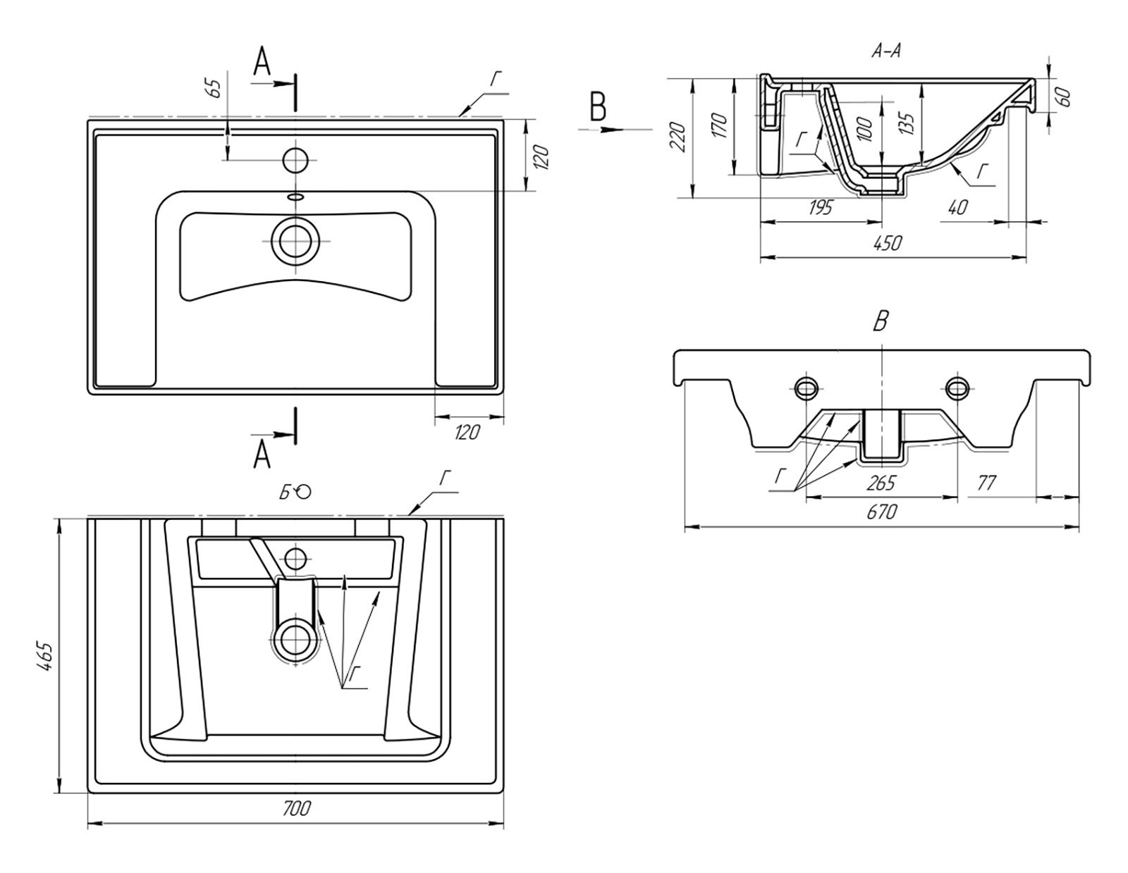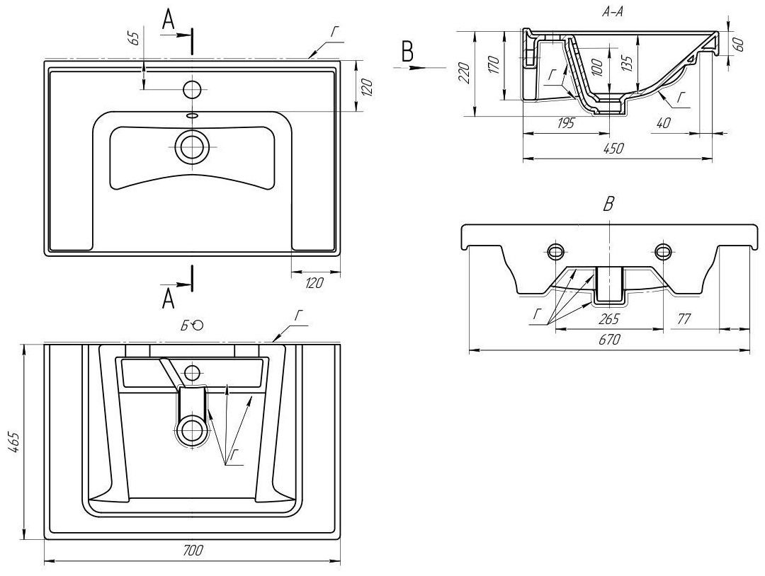 Тип: раковиныПо форме: прямоугольныеРазмер, мм (ШxГxВ): 700x465x220Размер в упаковке, мм (ШxГxВ): 730x495x250Цвет: белыйВес с упаковкой, кг: 17По монтажу: мебельнаяМатериал: керамика