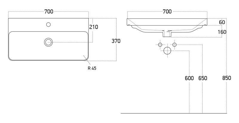 Тип: раковиныПо форме: прямоугольныеРазмер, мм (ШxГxВ): 700x370x160Размер в упаковке, мм (ШxГxВ): 730x400x190Цвет: белыйВес с упаковкой, кг: 15.45По монтажу: мебельнаяМатериал: керамика