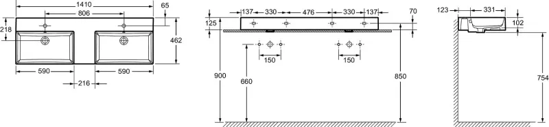 Раковина Jacob Delafon Vivienne , EXX112-00 , 140 см, двойная, белая Установка: подвесная и... Подробнее
