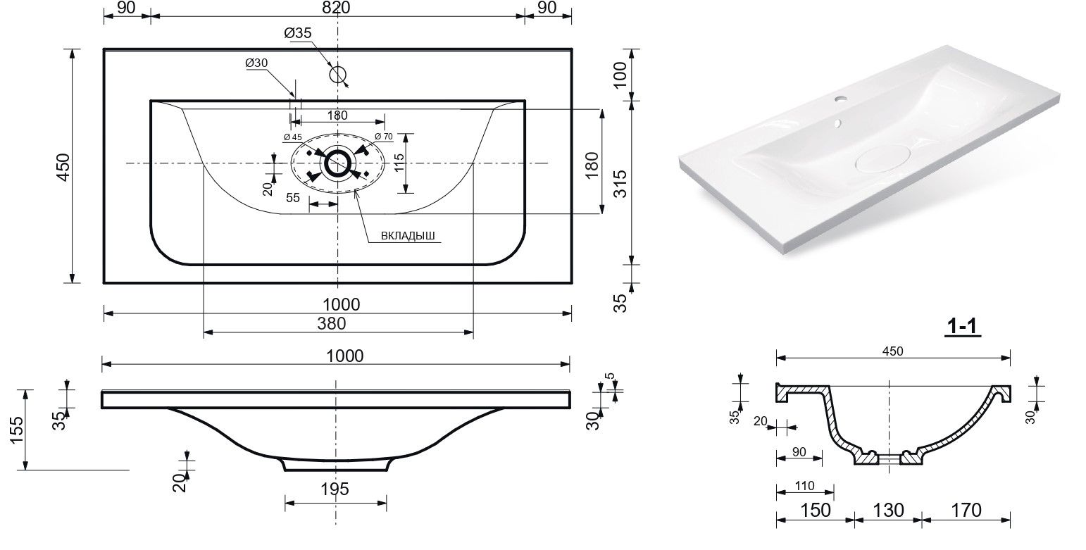 Отверстия под смеситель:1