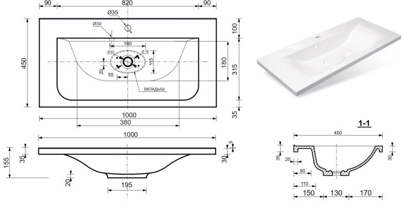 Тип:раковина на тумбу
