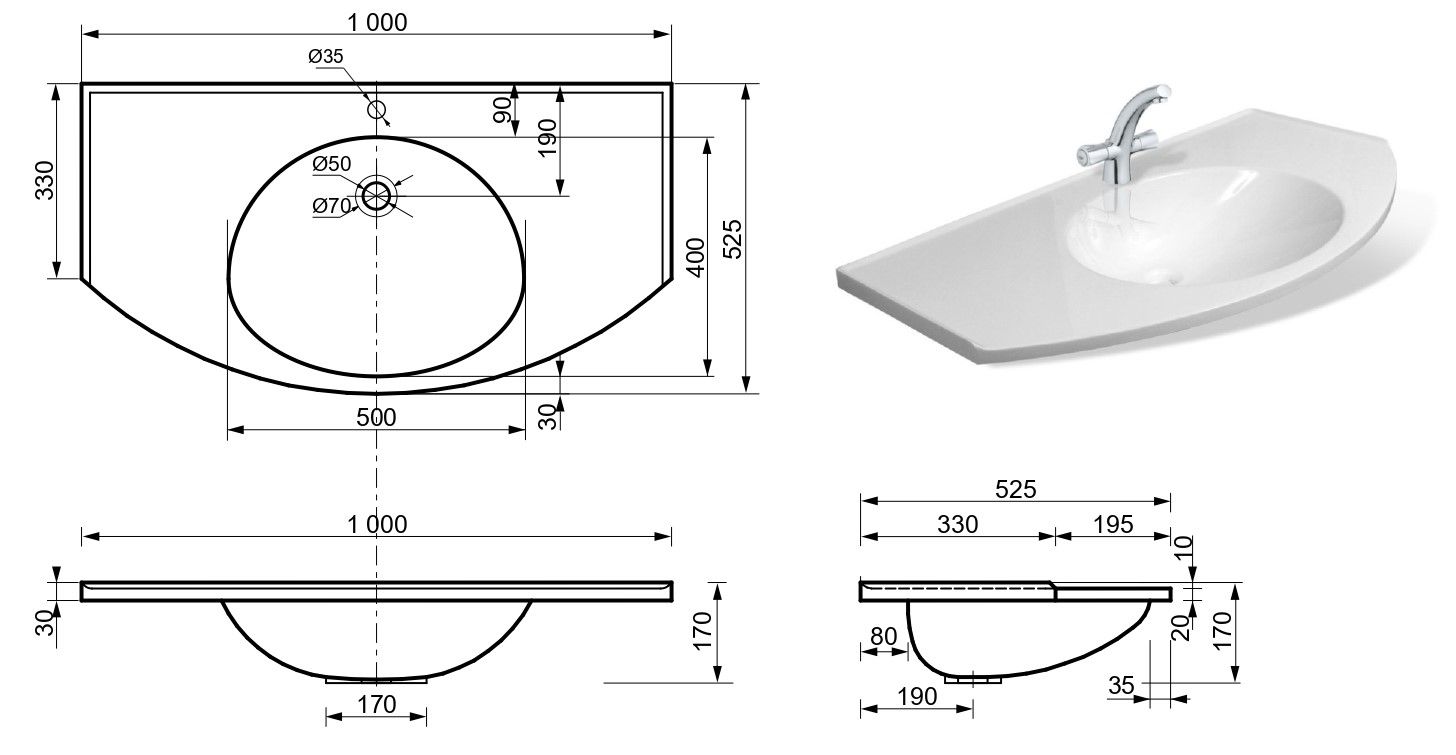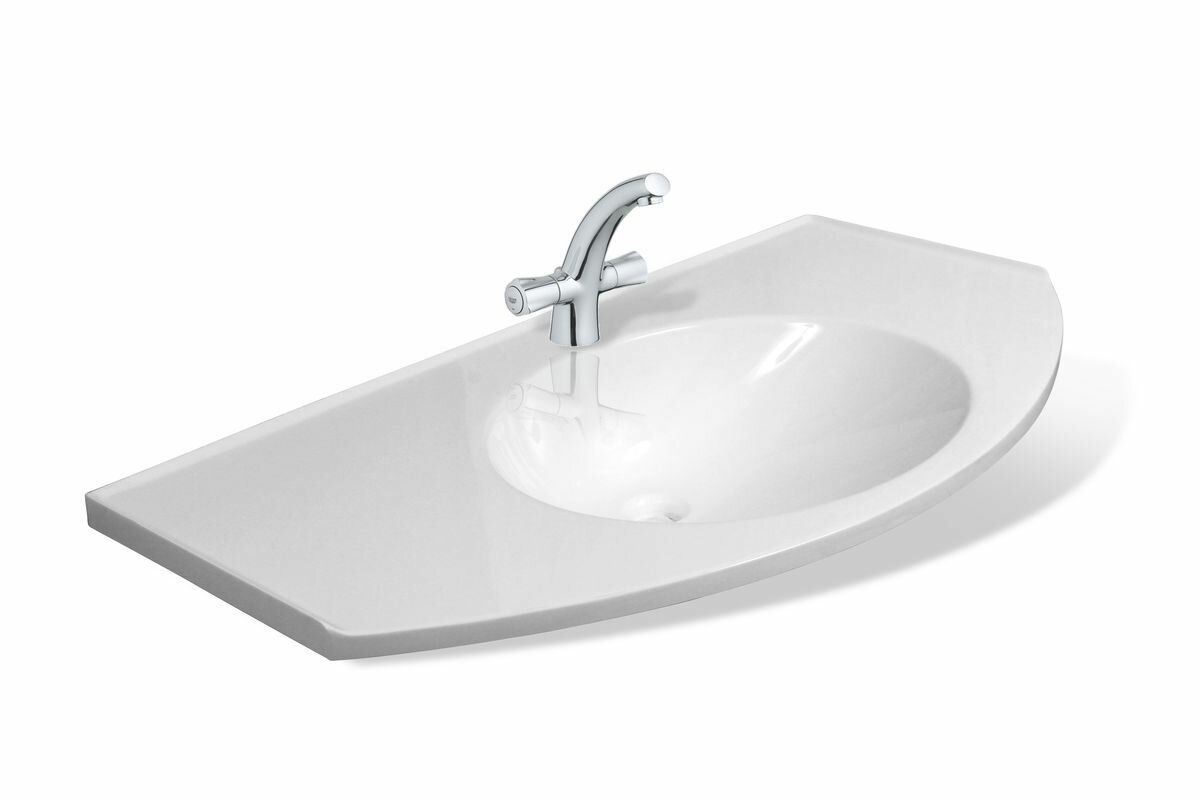 Раковина с необычным дизайном. Большая рабочая поверхность столешницы делает ее удобной в использовании, что немаловажно для ванной комнаты. Подходит для любого интерьера.