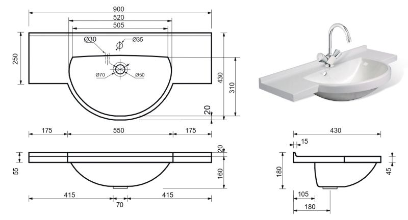 Раковина со стандартным дизайном, благодаря горизонтальной столешнице, значительно повышает свою функциональность и вносит в дизайн любой ванной комнаты атмосферу уюта и тепла.