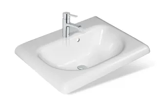 Изящная раковина, имеет сглаженные формы столешницы и чаши, что делает ее использование максимально удобным и приятным.