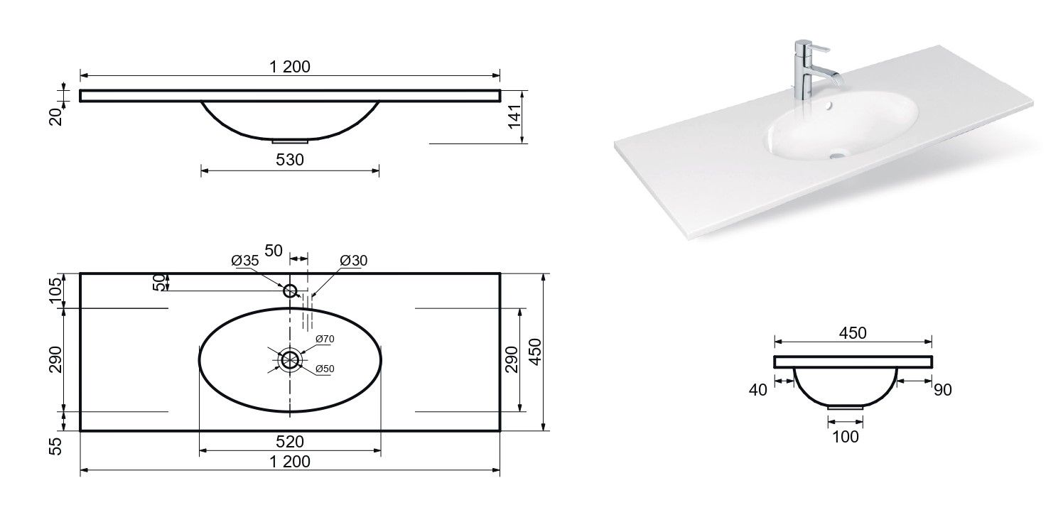 • Отверстия под смеситель: