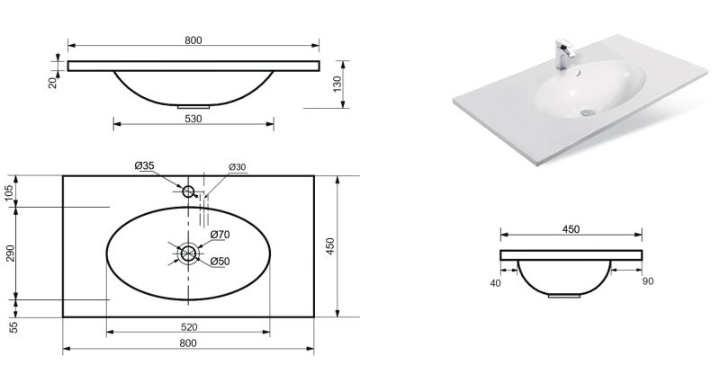 • Отверстия под смеситель: