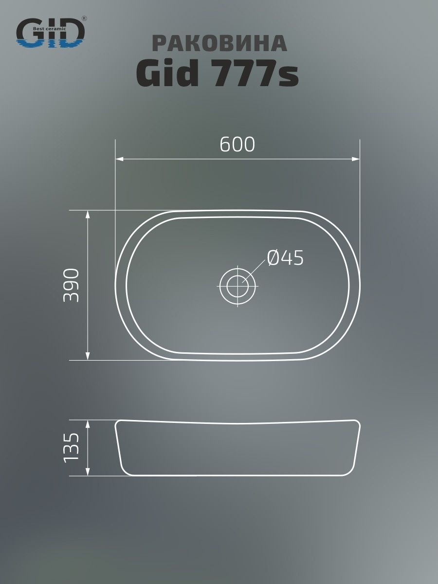 Раковина Gid 777s 51222 накладная белая 60x39x13.5 купить