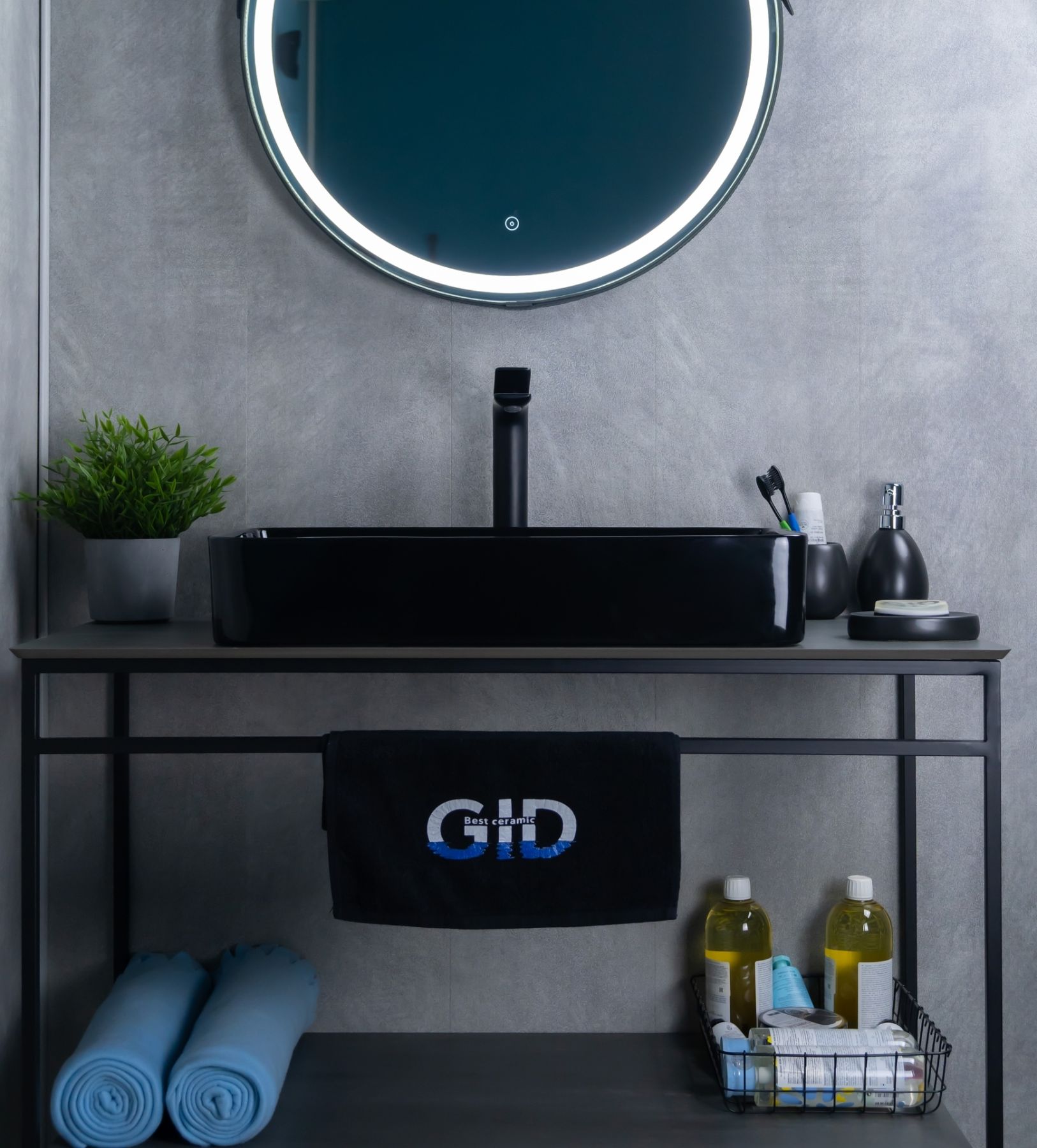 Серия Geometrico с прямоугольной формой: стиль и практичность с испанским качеством и европейскими стандартами. Стильная накладная раковина GiD BL9396 выполнена из высококачественной мелкопористой керамики с глянцевым черным покрытием, что придает ей современный и элегантный вид. Прямоугольная форма добавляет гармонию и утонченность в интерьер ванной комнаты. Накладная конструкция позволяет легко установить раковину на столешницу, предоставляя дополнительное пространство. Она станет отличным выбором для тех, кто ценит стиль и функциональность в дизайне ванной.