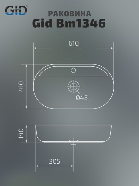 Раковина Gid Bm1346 53345 накладная черная матовая 61x41x14