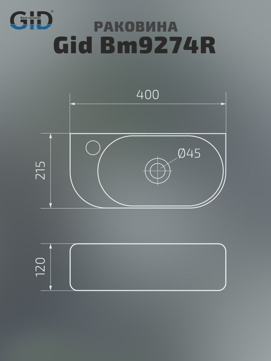 Раковина Gid Bm9274R 62204R подвесная черная матовая 40x21.5x12