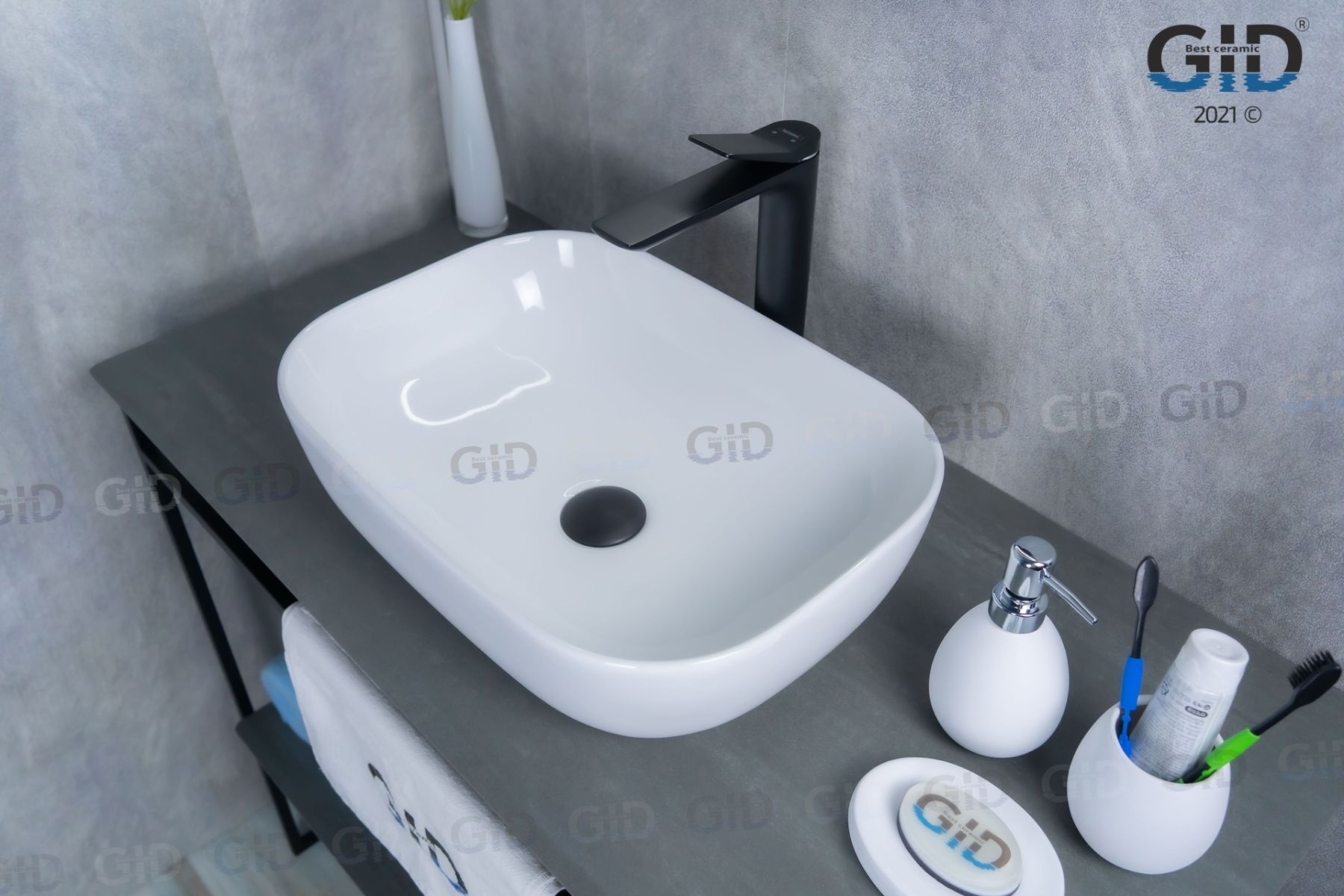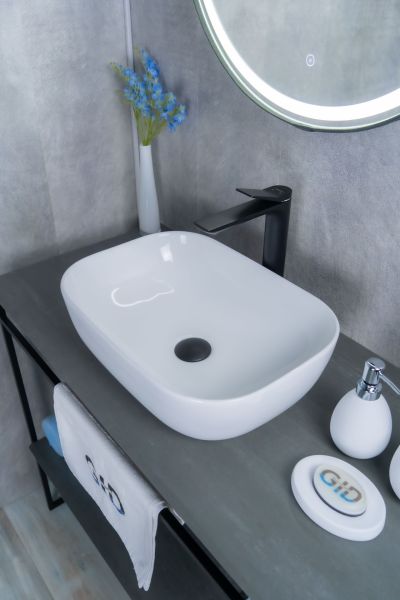 Серия Geometrico с прямоугольной формой: стиль и практичность с испанским качеством и европейскими стандартами. Накладная раковина GiD D1333 без отверстия под смеситель, изготовлена из мелкопористой керамики в белом глянцевом цвете. Гладкое стекловидное покрытие позволяет раковине быть устойчивой к загрязнениям. Прямоугольная форма и компактные размеры обеспечивают комфортное использование и легкую установку.