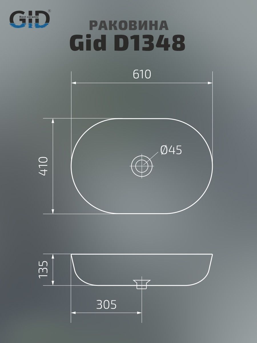Раковина Gid D1348 51204 накладная белая 61x41x13.5 купить