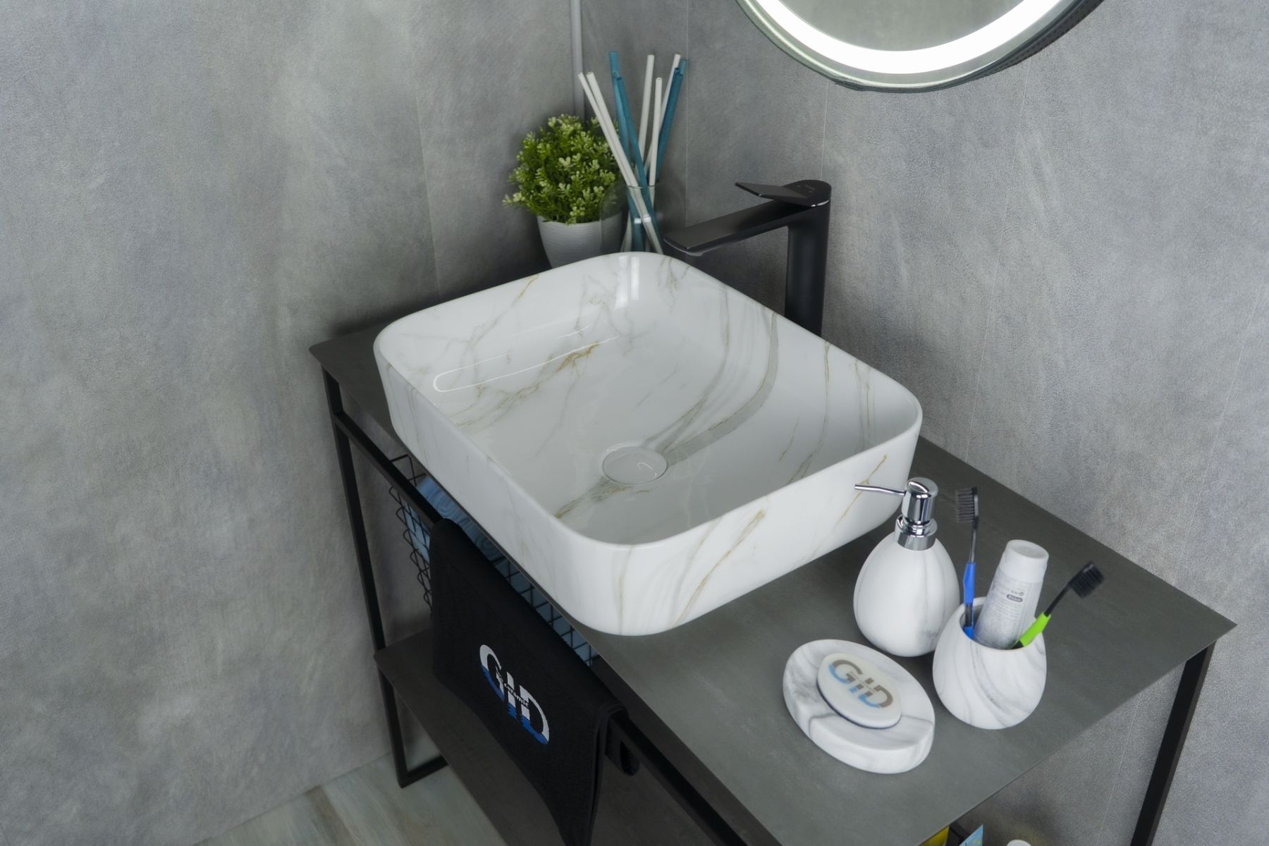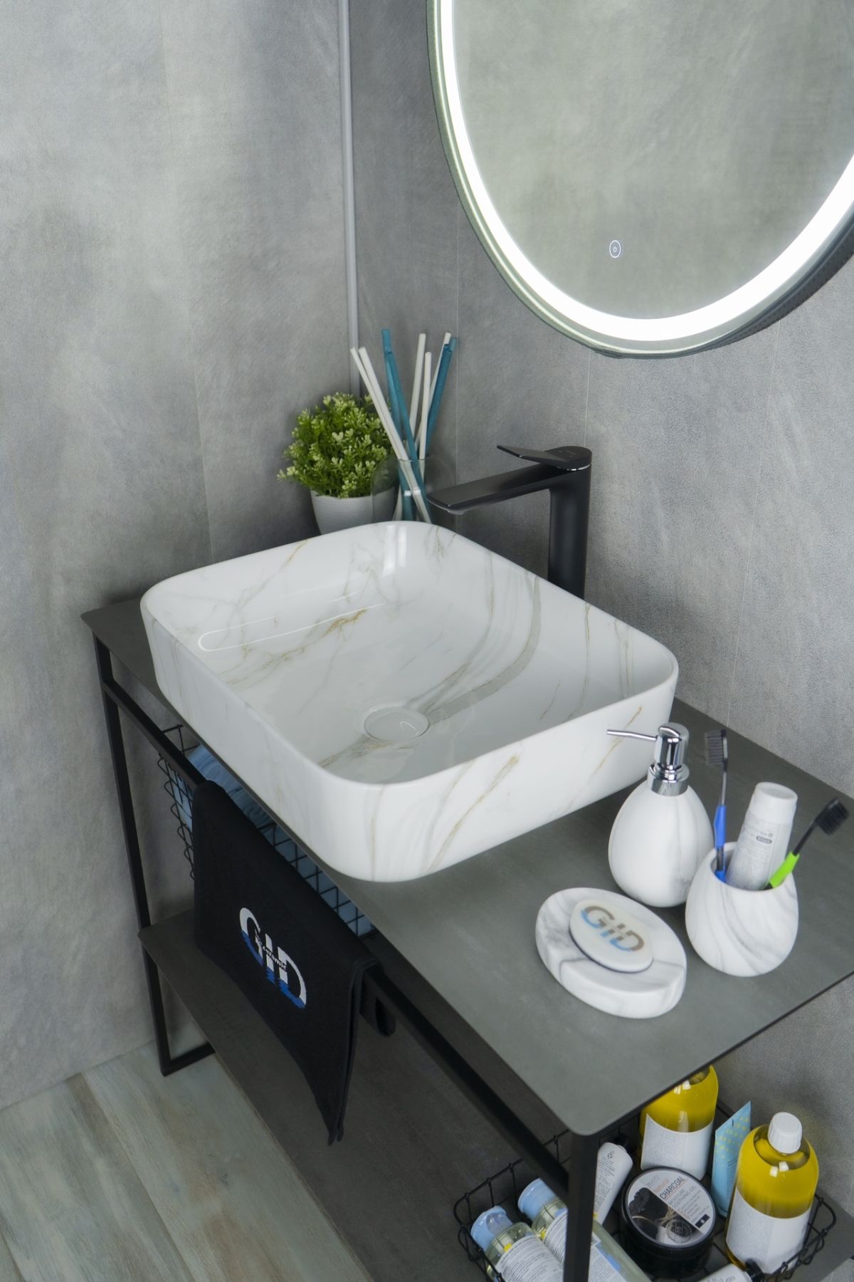 Серия Geometrico с прямоугольной формой: стиль и практичность с испанским качеством и европейскими стандартами. Раковина накладная GiD Mnc190 — элегантная модель прямоугольной формы, изготовленная из высококачественной керамики с глянцевой поверхностью, создающей эффект натурального камня. Её строгий и современный дизайн идеально подойдёт для ванных комнат в минималистичном или современном стиле. Благодаря отсутствию отверстия под смеситель раковина позволяет реализовать различные дизайнерские решения по размещению смесителя. Раковина предназначена для установки на столешницу, подчёркивая стильный и функциональный интерьер ванной комнаты.