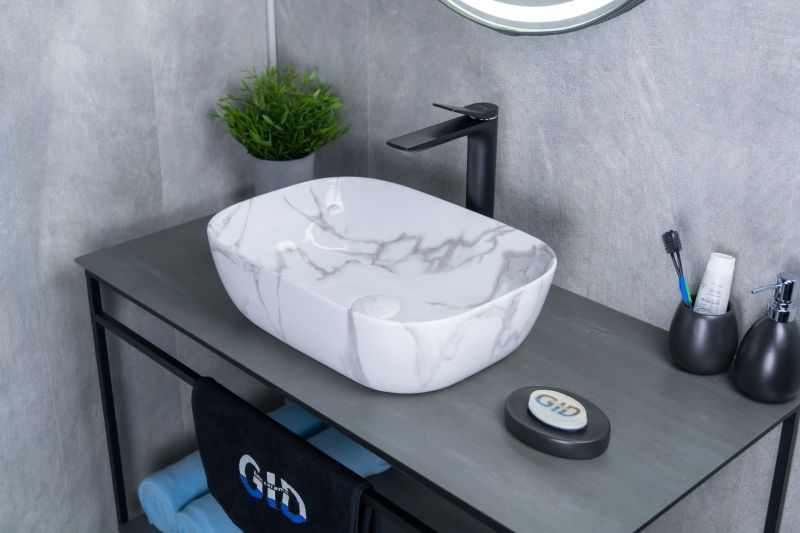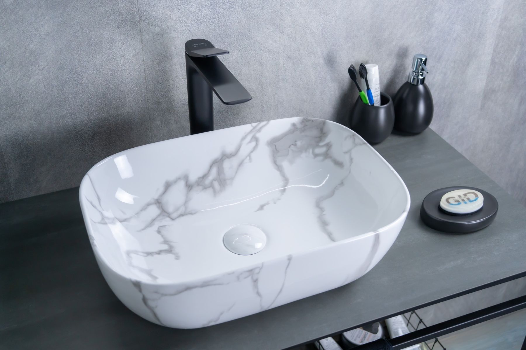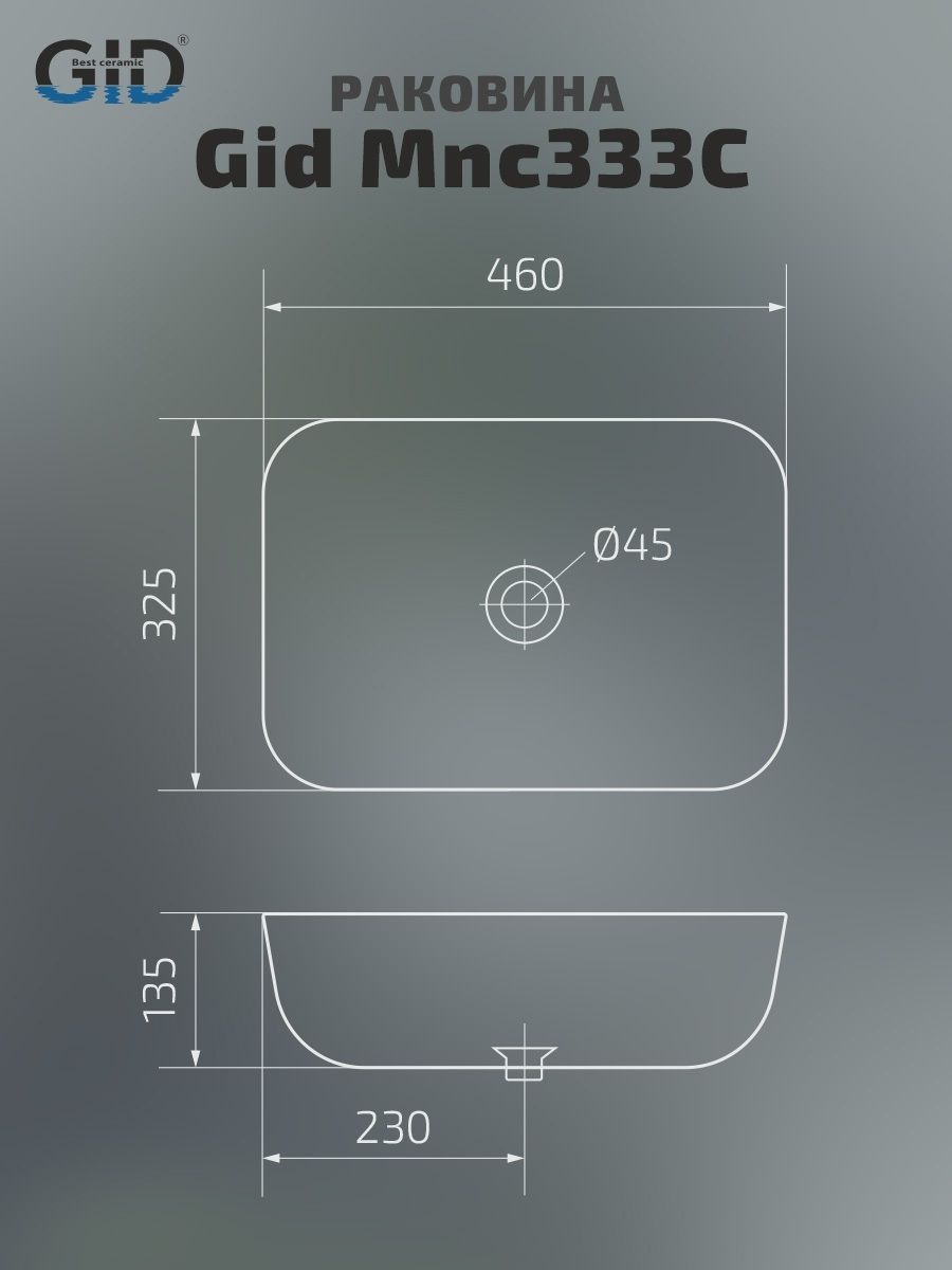 Серия Geometrico с прямоугольной формой: стиль и практичность с испанским качеством и европейскими стандартами. Раковина накладная GiD Mnc333C — элегантная модель прямоугольной формы, изготовленная из высококачественной керамики с глянцевой поверхностью в белом цвете, создающей эффект натурального камня. Её строгий и современный дизайн идеально подойдёт для ванных комнат в минималистичном или современном стиле. Модель не имеет отверстия под смеситель, что позволяет использовать различные варианты настенных или встраиваемых смесителей, предоставляя свободу в дизайне интерьера. Раковина предназначена для установки на столешницу, подчёркивая стильный и функциональный интерьер ванной комнаты.