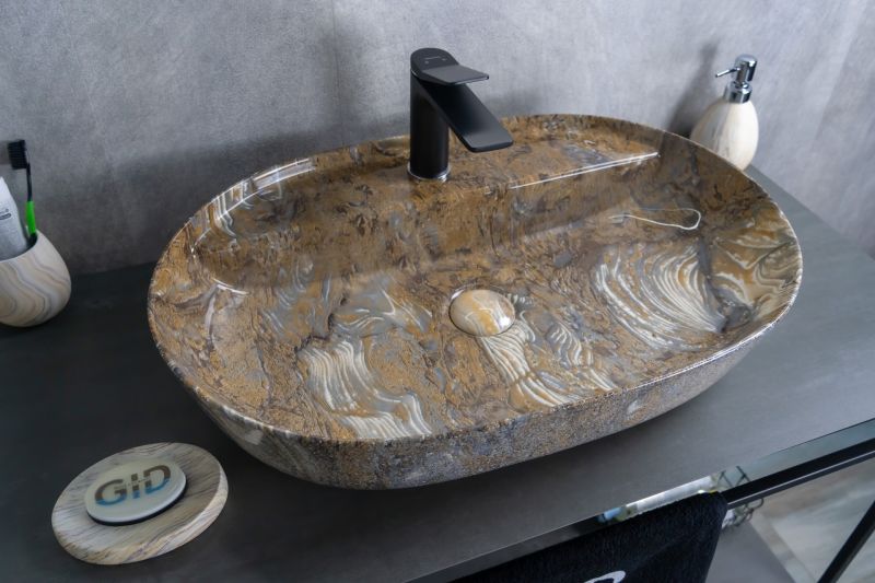 Раковина Gid Mnc346T 54471 накладная под камень глянцевая 61x41x14