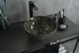 Раковины серии Esfera с круглой чашей — это эталон европейских стандартов и испанского мастерства. Раковина накладная GID Mnc486 — это стильная модель, изготовленная из высококачественной керамики. Она имеет круглую форму, что делает её практичным решением для современных ванных комнат. Дизайн раковины имитирует глянцевую поверхность натурального камня, придавая интерьеру элегантность и утончённость. Раковина устанавливается накладным способом на столешницу, что подчёркивает её современный стиль. Благодаря отсутствию отверстия под смеситель раковина позволяет реализовать различные дизайнерские решения по размещению смесителя. Раковина предназначена для бытового использования и гармонично впишется в любой интерьер ванной комнаты.