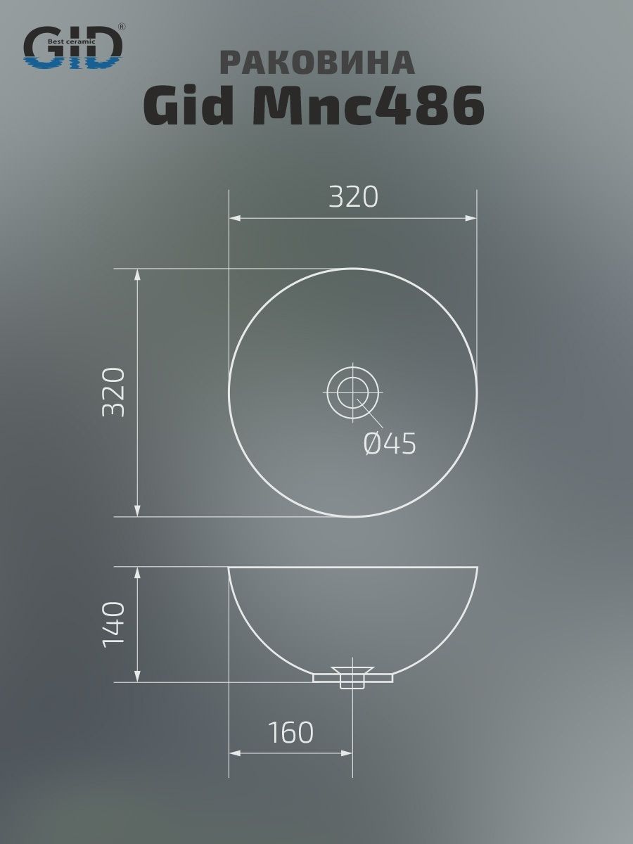 Раковина Gid Mnc486 54434 накладная под камень глянцевая 32x32x14 купить