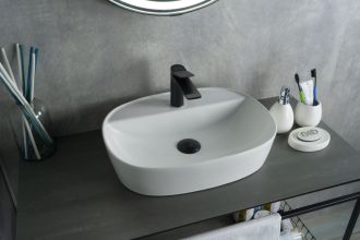 Серия Lago овальной формы — это испанское качество, соответствующее современным европейским требованиям. Раковина накладная GiD N9045 - это стильная модель, выполненная из высококачественной мелкопористой керамики с белым глянцевым покрытием, что обеспечивает долговечность и легкость в уходе. Прямоугольная форма придает ей современный и элегантный вид, а эргономичная чаша удобна для повседневного использования. Накладная конструкция позволяет легко установить раковину на столешнице, предоставляя дополнительное пространство вокруг. Оснащена отверстием под смеситель, что делает её удобным выбором для современной ванной комнаты.