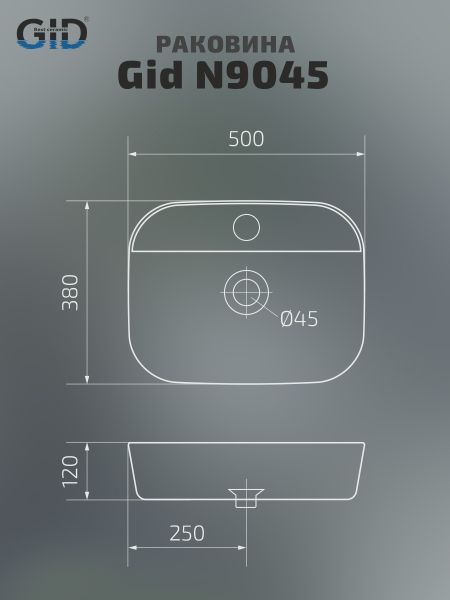 Раковина Gid N9045 51166 накладная белая 50x38x12 купить